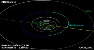 - ↑ a b «(2403) Šumava» (en inglés). Jet Propulsion Laboratory. Consultado el 15 de agosto de 2015.