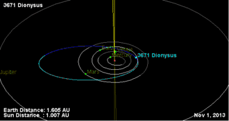 - ↑ a b c «(3671) Dionysus» (en inglés). Jet Propulsion Laboratory. Consultado el 15 de septiembre de 2015.