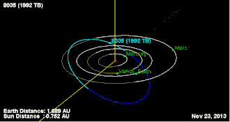 - ↑ «(8035) 1992 TB». Web de JPL (en inglés). Consultado el 5 de marzo de 2017.