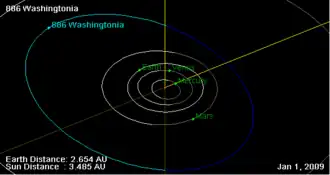 - ↑ a b «(886) Washingtonia» (en inglés). Jet Propulsion Laboratory. Consultado el 23 de julio de 2015.