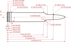 El diámetro del .257 Weatherby Magnum es .250 pulgadas que en el sistema métrico es de 6.35 mm.