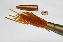 - Explosiva: Camisa de cobre con PETN y núcleo de plomo. Fulminante pintado de color púrpura.