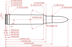 | Longitud del cañón de prueba: 24 mm (0,945 plg) | ||||||||||||||||||||||