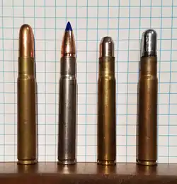 ![]() .30-06 Springfield parent cartridge on the left, .35 Whelen on the right | ||||||||||||||||||||||