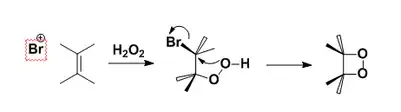 - a) Deshidrohalogenación de β-halo-hydroperóxidos