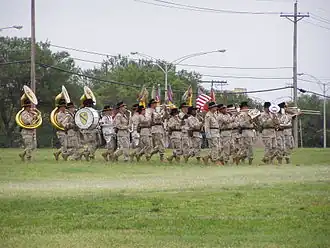 Desencajonamiento de la banda de la 1.ª División de Caballería, durante la Operación Libertad Irakí en Fort Hood, Texas