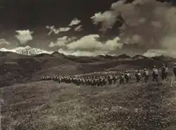 De arriba abajo, de izquierda a derecha: accidente del B-36 en la Columbia Británica de 1950 en el monte Kologet después de perder una bomba nuclear Mark 4, fue la primera pérdida de armas nucleares de este tipo en la historia; Soldados del EPL marchando hacia el Tíbet en la anexión del Tíbet por la República Popular China; Bandera puertorriqueña retirada por un miembro de la Guardia Nacional después del Levantamiento de Jayuya de 1950; Bhumibol Adulyadej en su coronación, en una procesión real; Monumentos a los mineros que murieron en el desastre de Knockshinnoch; Cuerpos de la masacre del Cerro 303 cerca de Waegwan, Corea del Sur; Ejecución sumaria de prisioneros políticos surcoreanos por parte del ejército surcoreano después de la Masacre de la Liga Bodo; Refugiados durante la guerra de Corea.