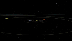 ![]() Ruta del asteroide 1I/omuaamua probablemente más allá de nuestro sistema solar. Tony Dunn; orbitsimulator.com | ||