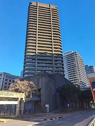 Su construcción comenzó en 1969 y terminó en 1972.[3] Ese año se convirtió en el más alto de la ciudad y conservó el título hasta 2019, cuando fue superado por la Portside Tower.[4] Se encuentra a 45 grados de la cuadrícula rectangular de la ciudad.[3] El giro diagonal de 34 grados, que lo coloca en un eje norte-sur, reduce las cargas de sol en las fachadas, reduciendo así la presión sobre el sistema de aire acondicionado.
