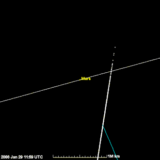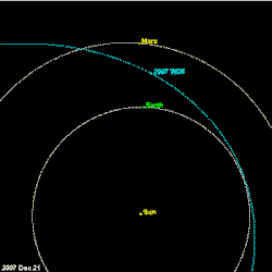 - ↑ Don Yeomans, Paul Chodas and Steve Chesley (2 de enero de 2008). «New Observations Slightly Decrease Mars Impact Probability». NASA/JPL Near-Earth Object Program Office. Archivado desde el original el 5 de enero de 2008. Consultado el 03-01-2008 (inglés).