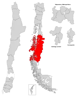 ![]() Ubicación en la Región de Aysén del General Carlos Ibáñez del Campo | ||