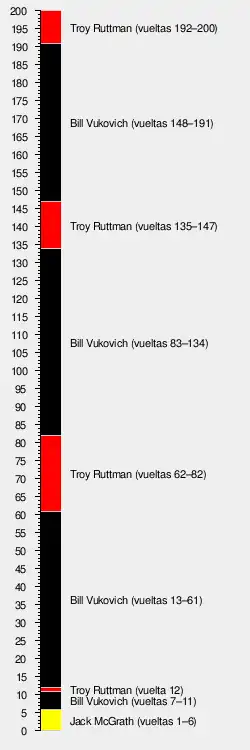 | 19 | 12 | 2 | Lesovsky-Offenhauser | 184 | +16 Vueltas | ||