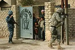 En marzo de 2003, 2.º Batallón del 325.º Regimiento fue adscrito al 75.º Regimiento Rangers como parte de una Unidad de operaciones especiales para llevar a cabo un asalto en paracaídas para tomar el Aeropuerto Internacional Saddam en apoyo de Operación Libertad Iraquí. Tras la anulación del salto en paracaídas para tomar el aeropuerto, el Batallón regresó con su Regimiento cerca de Nasiriya, Irak. En agosto de 2003 el Cuartel General de la División y el 3.er Batallón son enviados a Irak, para tomar el mando de las operaciones de combate en Bagdad y sus alrededores. El Cuartel General fue relevado por la I Marine Expeditionary Division en marzo de 2004 y las restantes unidades de la 82.ª reasignadas a Fort Bragg en abril de ese mismo año. Por primera vez en dos años la 82.ª estaba al completo en Fort Bragg.[3] Durante este despliegue inicial 36 soldados de la división murieron y unos 400 resultaron heridos, de los aproximadamente 12 000 desplegados. En 2005 dos batallones de infantería de la 82.º División, el 2.º y 3.er Batallón del 325.º Regimiento, fueron enviados a Irak días antes del referéndum, para la aprobación de la nueva constitución iraquí.[4] Unidades de la división han continuado con los despliegues en Irak en periodos que van desde los cuatro a los quince meses. El periodista Karl Zinsmeister que acompañó a la 82.ª División Aerotransportada durante los primeros días de la participación publicó un libro de 2003, Boots on the Ground: A Month with the 82nd Airborne in the Battle for Iraq (Botas en el suelo: Un mes con la 82.ª División Aerotransportada en la Batalla de Irak).