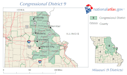 El 9.º distrito congresional se encontraba ubicado en las coordenadas 38°56′54″N 92°20′2″O / 38.94833, -92.33389.