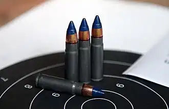 ![]() Cuatro cartuchos 9 x 39 SP-6 (7N9), con balas antiblindaje. | ||||||||||||||||||