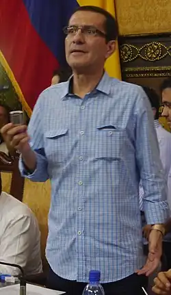 - 2019: Crisis presidencial de Venezuela. Para el año de 2019 Venezuela ya vivía años de una profunda crisis política, económica y social. El 10 de enero de 2019, el presidente Nicolás Maduro tomó posesión de su segundo mandato aunque fue desconocido por la oposición y varios gobiernos del mundo pues consideraban que las elecciones en las que había resultado reelecto habían sido fraudulentas. En este contexto el presidente de la Asamblea Nacional, Juan Guaidó, es proclamado presidente encargado el 23 de enero y es reconocido como jefe de Estado por más de cincuenta países, entre ellos Estados Unidos. El 23 de febrero, simpatizantes del gobierno impidieron la entrada de ayuda humanitaria al país incendiando camiones que la transportaban, esto luego de que el gobierno se opusiera a cualquier asistencia extranjera en la crisis. En la madrugada del 30 de abril, Guaidó junto con el líder opositor Leopoldo López, hasta entonces en prisión domiciliaria, y un grupo de militares anunciaron un levantamiento contra el gobierno de Maduro, sin embargo este no logró concretarse. Para finales de año la situación no logró resolverse y se estima que más de 4 millones de venezolanos habían emigrado a causa de las condiciones de hiperinflación, la escasez de productos y suministros básicos y la violencia que se vive en su país natal.[18]