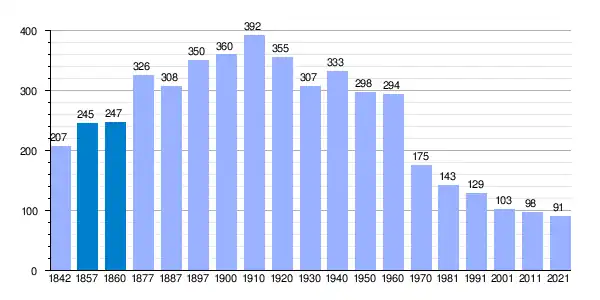 | Gráfica de evolución demográfica de Añover de Tormes[8] entre 1842 y 2021 |
