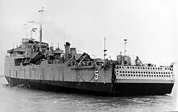 • 3 LCT (Mk V o VI) para 5 tanques medios cada uno • o 2 LCT (Mk III o IV) cada uno para 12 tanques medios • o 14 LCM (Mk III) para un tanque medio • o 1500 t de carga • o 47 vehículos anfibios • o 41 vehículo de desembarco con cadenas • combinaciones de los anteriores | |
