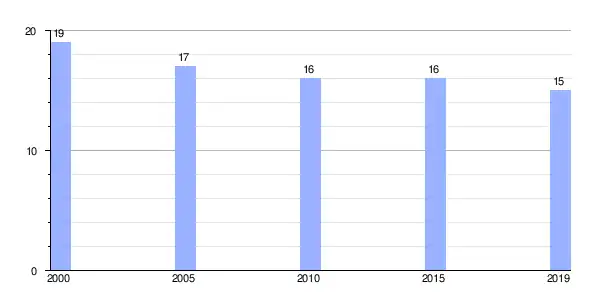 | Gráfica de evolución demográfica de A Abelleira entre 2000 y 2019 |