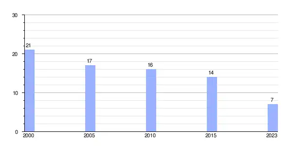 | Gráfica de evolución demográfica de A Alenza entre 2000 y 2023 |