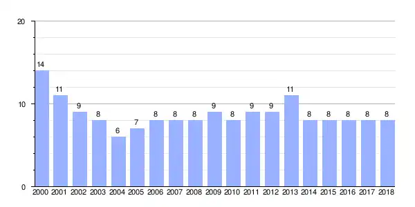 | Gráfica de evolución demográfica de A Igrexa entre 2000 y 2018 |