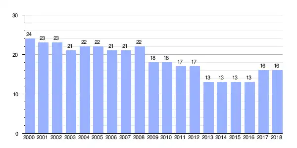 | Gráfica de evolución demográfica de A Igrexa entre 2000 y 2018 |