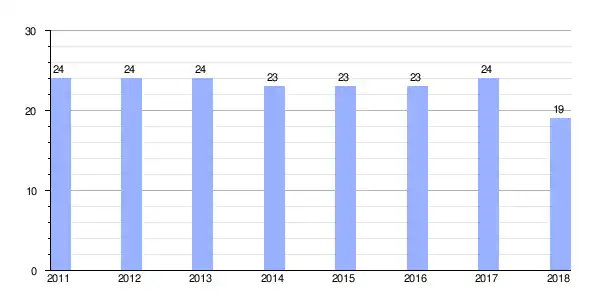 | Gráfica de evolución demográfica de A Igrexa entre 2011 y 2018 |