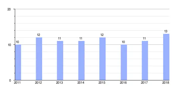 | Gráfica de evolución demográfica de A Igrexa entre 2011 y 2018 |