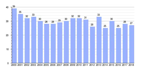 Gráfica de evolución demográfica de Louseira entre 2000 y 2018