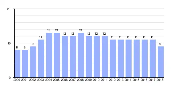 Gráfica de evolución demográfica de A Pedreira entre 2000 y 2018
