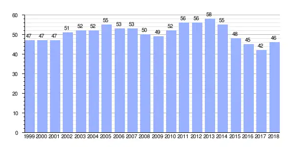 | Gráfica de evolución demográfica de Peneda entre 1999 y 2018 |