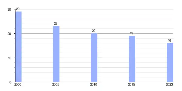 | Gráfica de evolución demográfica de A Penela entre 2000 y 2023 |