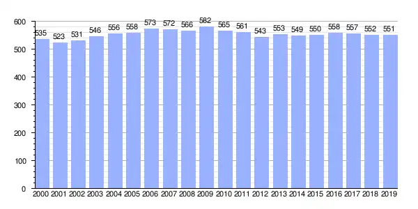 | Gráfica de evolución demográfica de Santiago entre 2000 y 2019 |