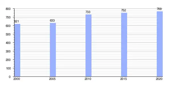 | Gráfica de evolución demográfica de Puebla de San Julián (parroquia) entre 2000 y 2020 |