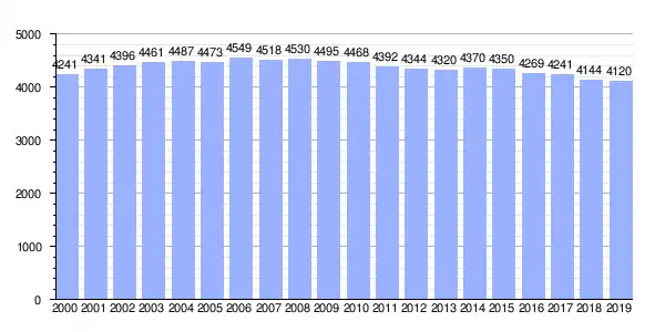 | Gráfica de evolución demográfica de Puebla del Caramiñal (localidad) entre 2000 y 2019 |