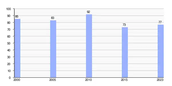 | Gráfica de evolución demográfica de Portela de Portomourisco entre 2000 y 2023 |