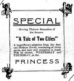 - ↑ «Stories of the films: A Tale of Two Cities (parts I, II & III)». Moving Picture World 8, 9: 490. 4 de marzo de 1911.