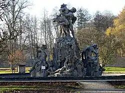 Los parques se modificaron significativamente en el siglo XIX. La gran fuente de W. van der Auvera, que muestra a Hércules y Anteo (1747). Balthasar Neumann planeó una torre de vigilancia al sudoeste. Al noroeste y al norte hay edificios administrativos y una terraza con una orangerie. La Bamberger Tor aún permanece.[1]: 241