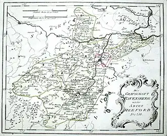 ![]() Mapa de los territorios de la Abadía de Herford en un mapa del siglo XVIII | |||||||||||||||||||||||||||||||