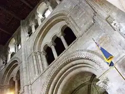 En la nave se esculpen capiteles con gallones, algunos de los cuales se trabajan con entrelazados, motivos vegetales, hojas de acanto cercanas a las de la catedral de Canterbury. Los capiteles del coro son más variados y, a veces, historiados. El más famoso, en el nave lateral sur, firmado ROBERT ME FECIT representa personajes rígidos y cortos como suspendidos entre el cielo y la tierra. En el centro hay un rey, con un hombre sentado y un ángel, a la izquierda, y un hombre sosteniendo una filacteria y una máscara, a la derecha. Este capitel es una reminiscencia de los de la abadía de Saint-Georges-de-Boscherville y de la abadía de Graville en Normandía. Filas de modillones, a veces tallados, corren bajo las cornisas externas.