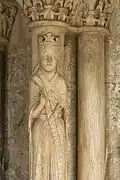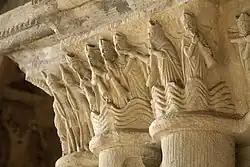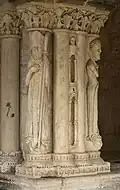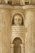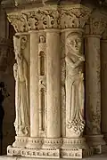 Las esculturas románicas también están en el siglo XI para ser esbeltas y graciosas, las ménsulas están decoradas con cabezas extrañas, las esculturas del triforium son más audaces y bien formadas. Dos medallones representan a guerreros y a un obispo bendiciéndoles.