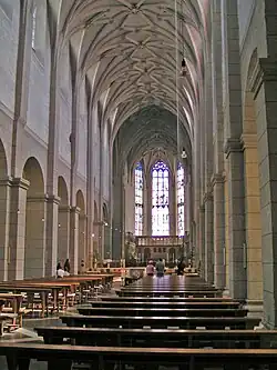 La iglesia abacial, una basílica románica, es un lugar famoso de peregrinación debido a la tumba de san Matías el Apóstol, en honor al cual la abadía recibió su nombre, que se encuentra aquí desde el siglo XII, y que es el único lugar de enterramiento de un apóstol en Alemania y al norte de los Alpes. La abadía tuvo originalmente el nombre de san Eucario, primer obispo de Trier, cuya tumba se encuentra en la cripta. Dado que la iglesia es un importante lugar de peregrinación para venerar las reliquias de san Matías, el Papa le concedió el estatus de basílica menor el 20 de marzo de 1920, en ese momento la quinta del país.