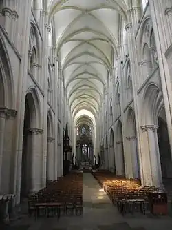 Una nueva iglesia gótica fue construida por el abad Henri de Sully[9] y después por Raoul d'Argences.[6] A la muerte de Henri de Sully en 1187, el proyecto de una nave de cinco tramos debía estar a punto de acabarse. Raoul d'Argences dobló el número de tramos pero no vio su finalización. Un documento atribuye la fachada con torres y los cinco tramos adyacentes a Raoul d'Argences. La dendrocronología fecha la carpintería de la parte occidental de la nave en 1227/1228.[6] Se completó en el siglo XIII.