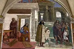 La disposición de los frescos sigue el relato de san Gregorio sobre la vida de Benedicto. Las pinturas de Signorelli se ejecutaron en 1497-98, mientras que las de il Sodoma se completaron después de 1505.
