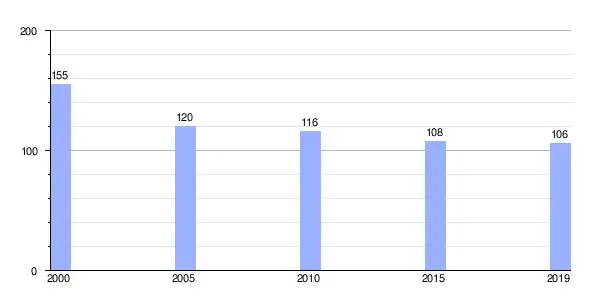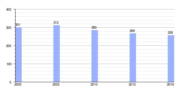| Gráfica de evolución demográfica de Abadín (parroquia) entre 2000 y 2019 |