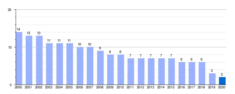 | Gráfica de evolución demográfica de Abastillas entre 2000 y 2020 |