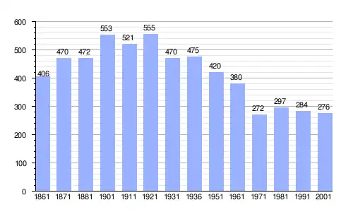 La localidad vio como la población abandonaba el campo para ir a vivii a las ciudades industriales, viendo como la población se reducía más de un 30 % desde los años 1950. Desde los años 2000 la población ha aumentado debido al incremento del terreno edificable.