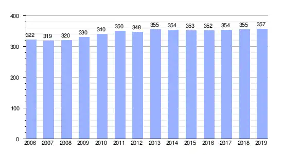 | Gráfica de evolución demográfica de Abelcourt entre 2006 y 2019 |
