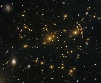 ![]() Imagen del cúmulo de galaxias Abell 370 tomada por el Telescopio Espacial Hubble el 16 de julio de 2009. | ||