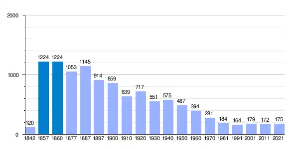 Población de derecho según los censos de población del INE Población de hecho según los censos de población del INEEntre el censo de 1857 y el anterior, crece el término del municipio porque incorpora a 255065 (Boixols)[6] |